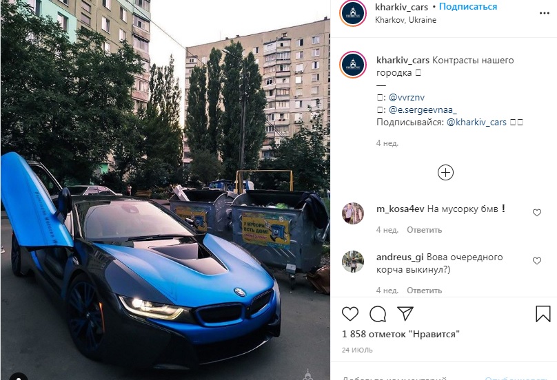 Многие начали шутить, что BMW бросили на мусорке.