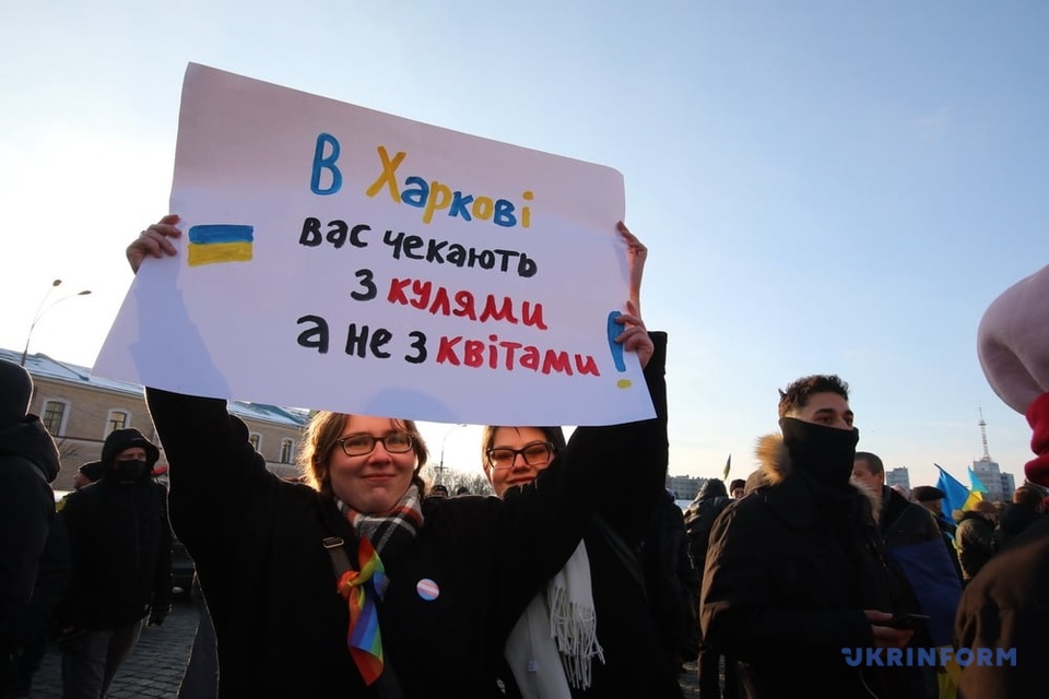 "Надо показать, что Харьков - это Украина. И мы все едины. Мы ничего не боимся. На самом деле, они должны нас бояться. Возможно, это резонанс общественного мнения, когда мы слушали пропаганду, которая говорила, что вам нужно бояться, вас мало, мы вас победим, но это им нужно бояться: мы здесь, на своей земле, мы в своем городе", - заявил в комментарии журналистам участник марша Антон.
