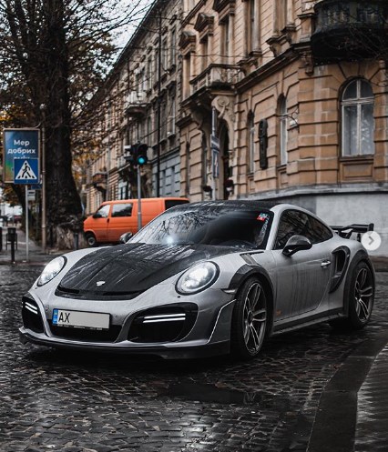 На улице в Харькове заметили припаркованным дорогой спорткар Porsche 911 Turbo TechArt.
