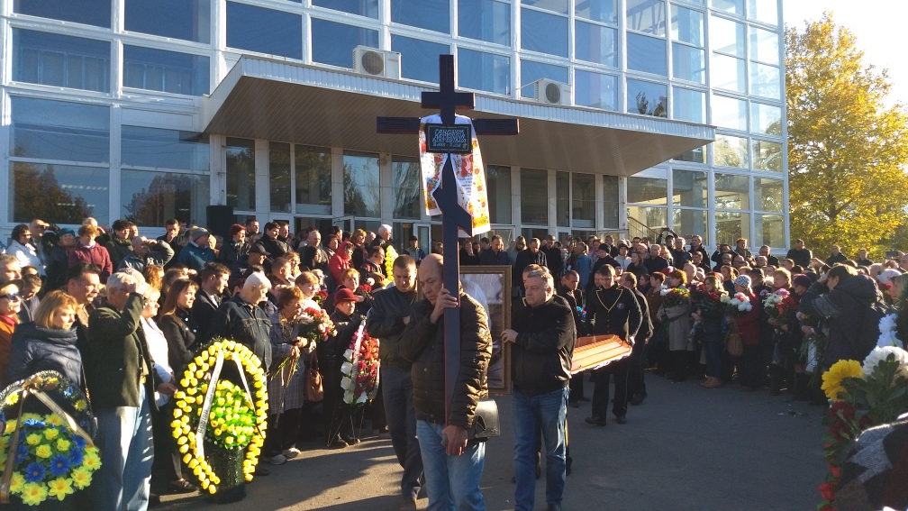Церемония прощания продлилась до 15 часов, после чего гроб с телом активистки повезли на кладбище. Ее похоронили на кладбище в поселке Геологов, на участке, который выделен для погибших участников АТО.