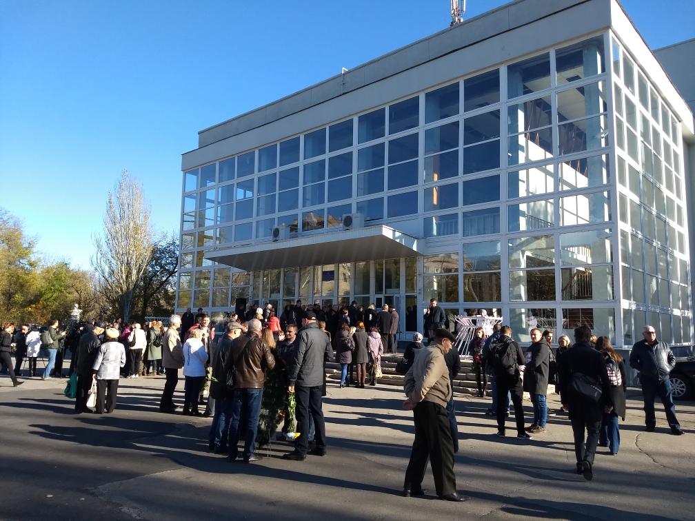 На церемонию прощания с Гандзюк, котрая проходила в областном Дворце молодежи и студентов, пришло множество людей. В частности, присутствовали родные и близкие активистки, ее коллеги и жители города.