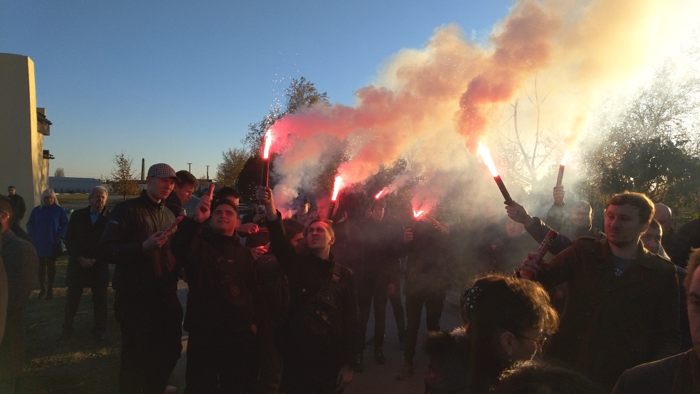 Провести активистку в последний путь пришли сотни людей. Некоторые из них во время прощания зажгли фаеры.