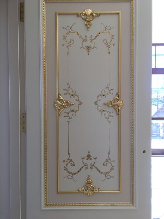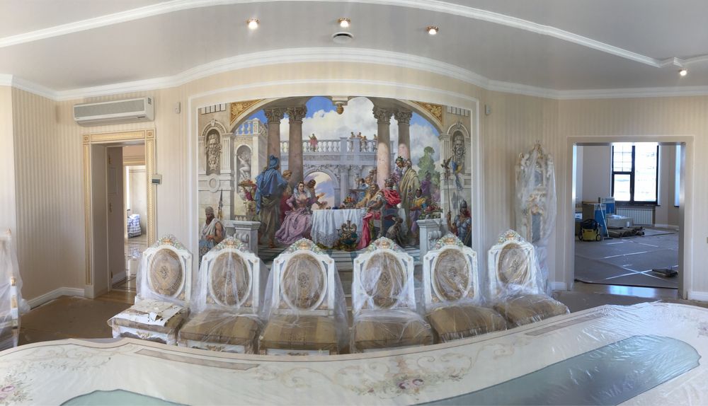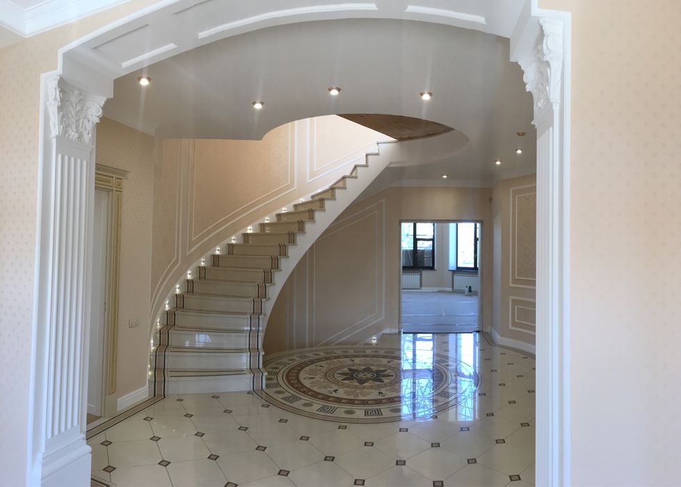 В доме будет паркет и плитка ручной работы, мраморные полы и подоконники, и отделка сусальным золотом межкомнатных дверей.