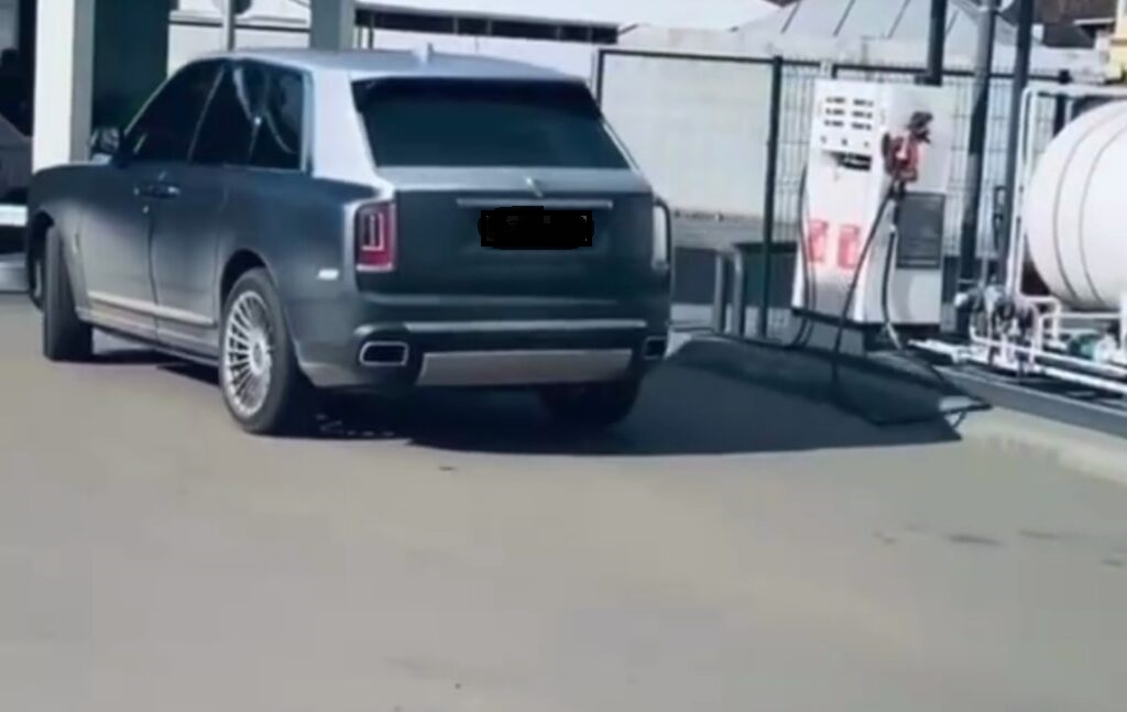 Роскошный суперкар стоял на газовой заправке, что вызвало удивление: может владелец роскошного Rolls-Royce установил газобалонное оборудование на свой Cullinan?