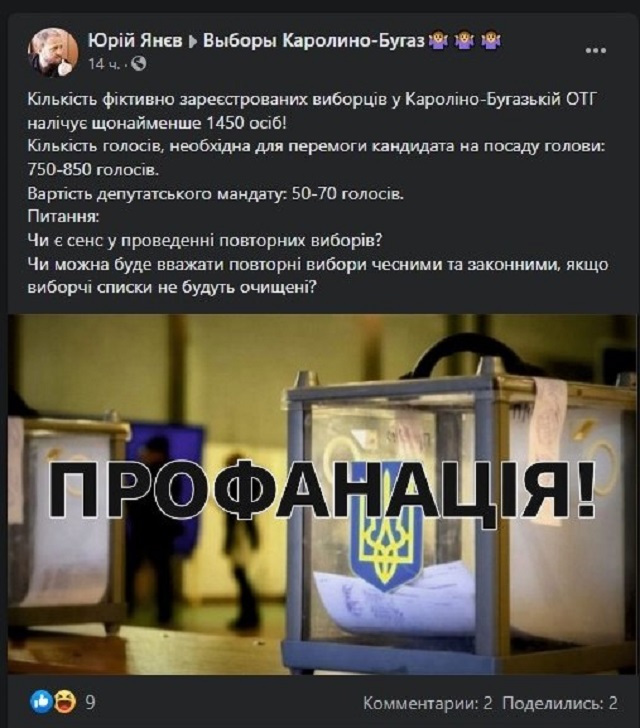 При этом эксперт отмечает, что количество голосов, необходимое для победы кандидата на должность головы: 750-850 голосов, на должность депутата: 50-70 голосов. Таким образом Юрий Янев считает повторный избирательный процесс в Затоке и Каролино-Бугазе "профанацией".