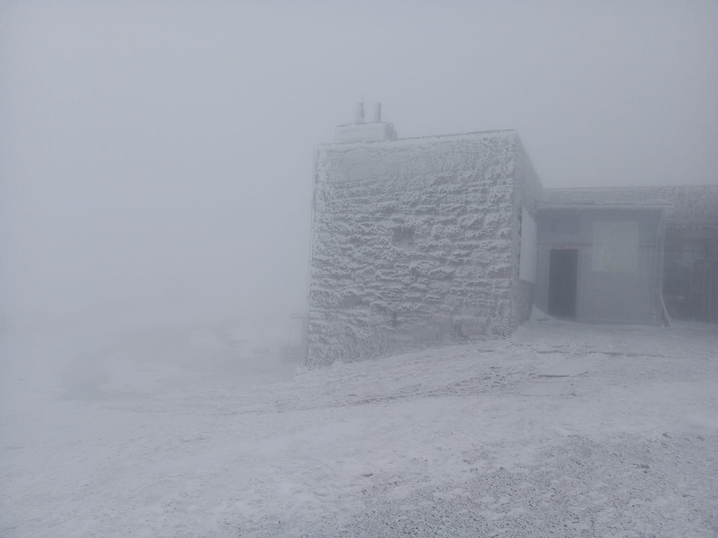 Так, утром во вторник, 1 июня на горе Поп Иван Черногорский было облачно, с юго-восточным ветром 10-12 м/с. Температура воздуха - минус 1 градус. Гора покрыта снегом.