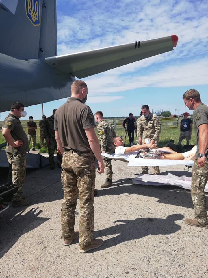 Военнослужащие проходили лечение в Харькове, где военные врачи стабилизировали их состояние и подготовили военных к следующему этапу лечения. Военно-транспортным самолетом Воздушных Сил Вооруженных Сил Украины Ан-26 13 военнослужащих, получивших огнестрельные ранения в районе проведения операции Объединенных сил на Донбассе, доставили в аэропорт "Борисполь", а затем специализированным транспортом - в Национальный Военно-медицинский клинический центр "ГВКГ", расположенный в городе Киев.
