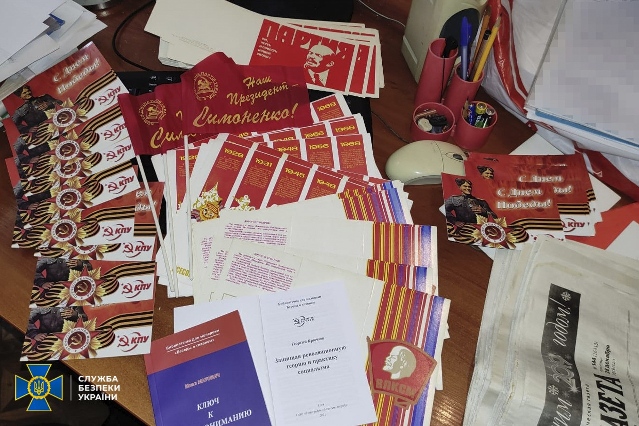 Также обнаружены склады с прокремлевской литературой, агитационными листовками с символикой тоталитарного режима СССР и "методички" российских пропагандистов, в которых призывают к поддержке оккупационных группировок РФ и дают рекомендации по насильственному захвату власти.