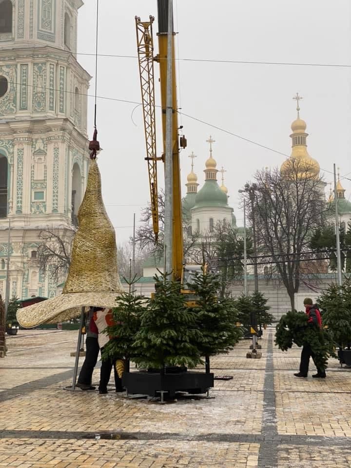 Вместо золотой шляпы, на главной елке Украины, которую на Софийской площади нарядили 10 декабря, появится красивая восьмигранная звезда.
