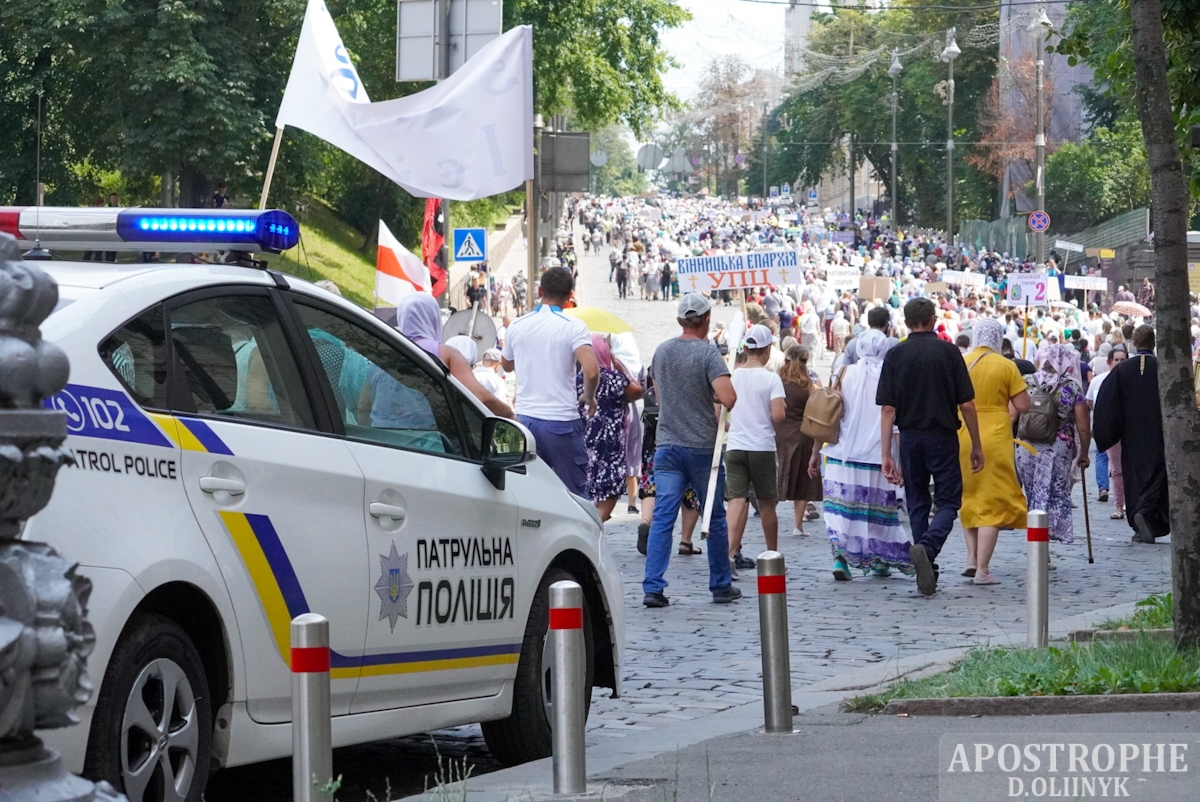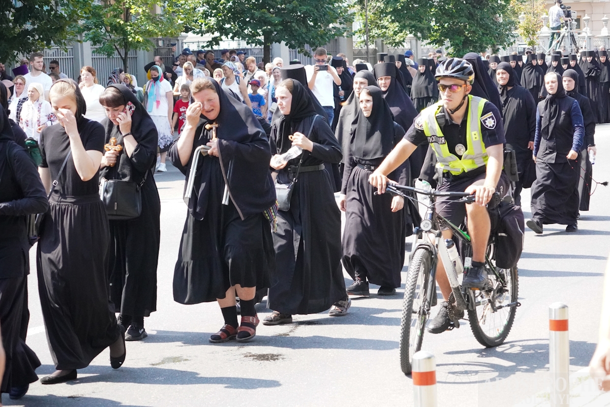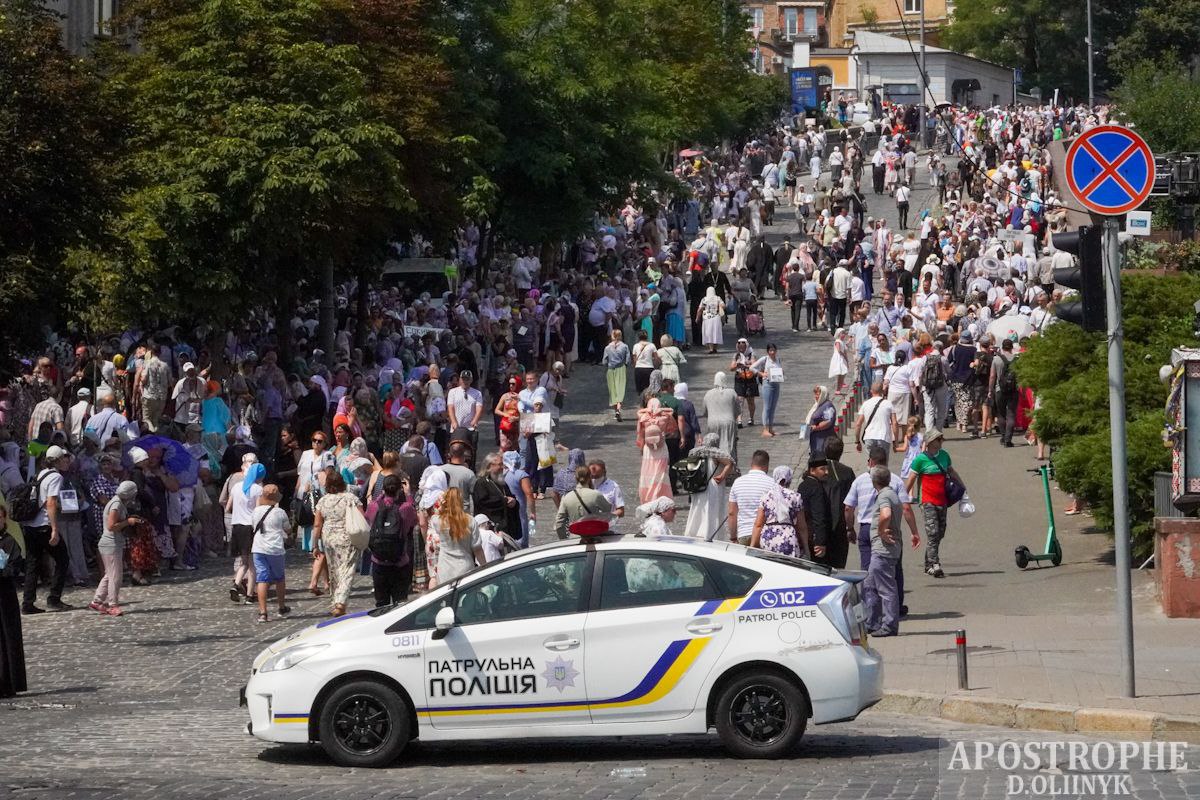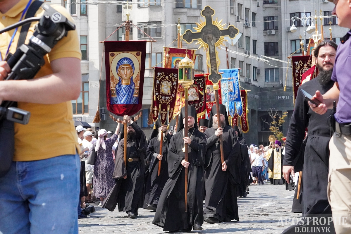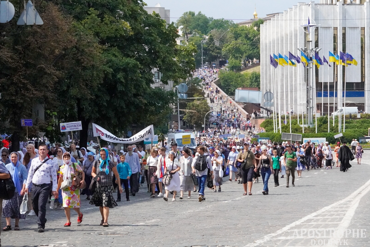 Во вторник, 27 июля, в Киеве верующие Украинской православной церкви пришли на Владимирскую горку в День Крещения Руси, после чего они прошли Крестным ходом к Киево-Печерской лавре.