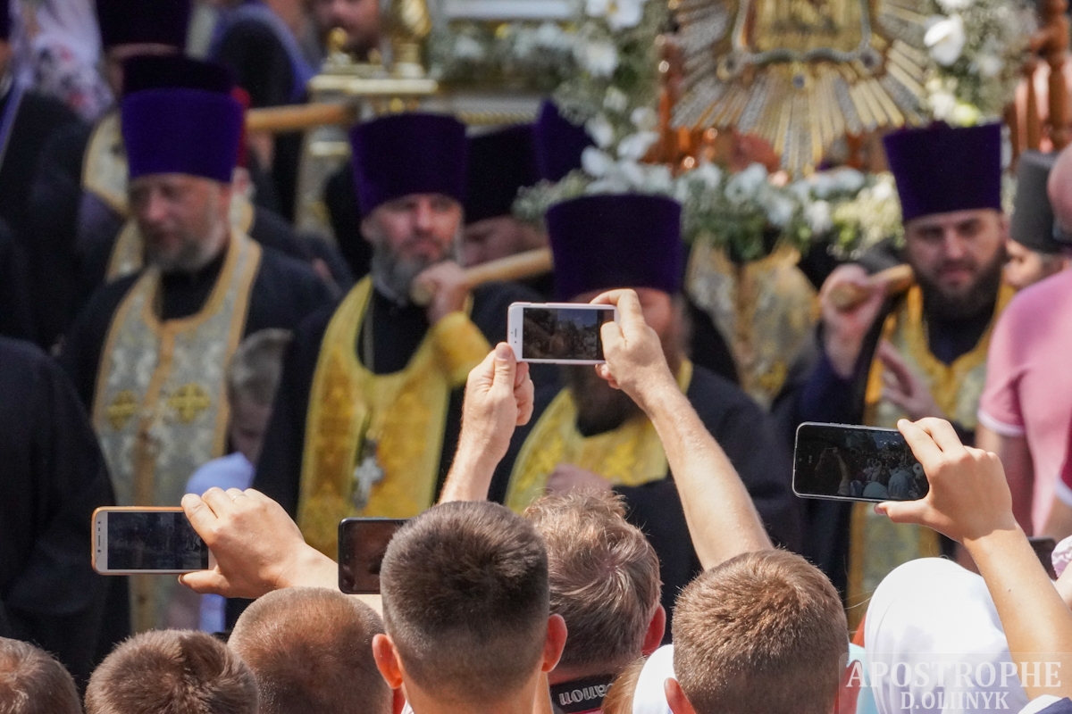 Крестный ход возглавили чудотворные иконы со всей Украины. После этого святыни будут находиться в Трапезном храме преподобных Антония и Феодосия Печерских Киево-Печерской лавры всю ночь и 28 июля.