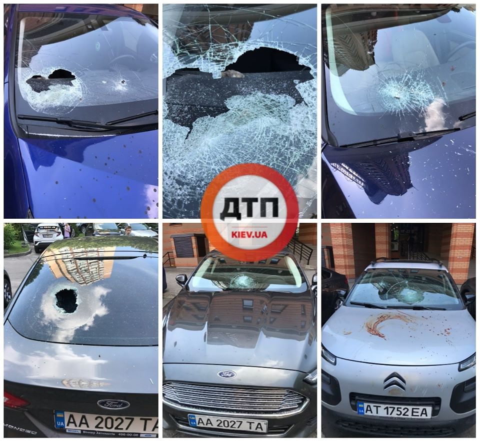 В Киеве неизвестные измазали автомобили чем-то бурого цвета и побили стекла.