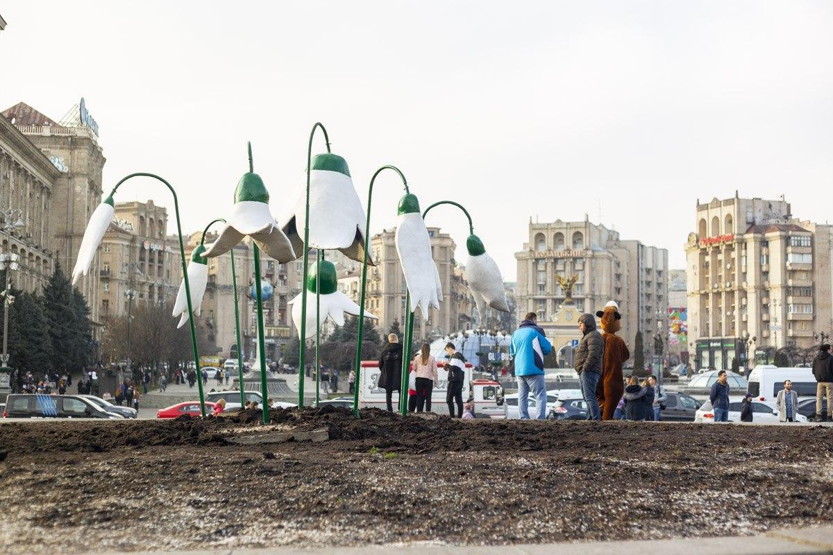Как пишут в Telegram-канал "Киев сейчас", инсталляция выполнена в виде подснежников из бетона, а установили ее на майдане Независимости.