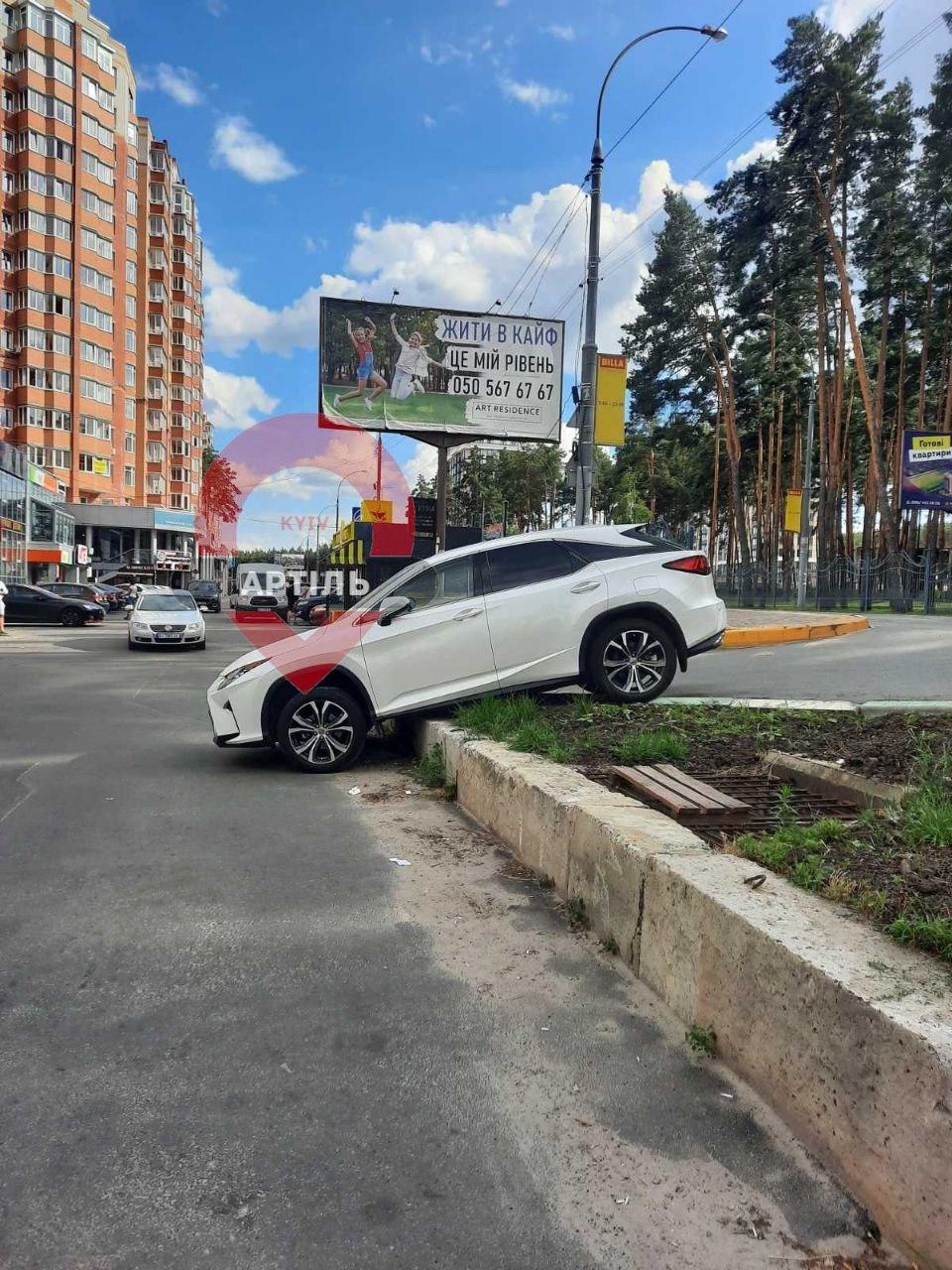 На снимке видно, что водитель оставил свое транспортное средство прямо на бордюре.