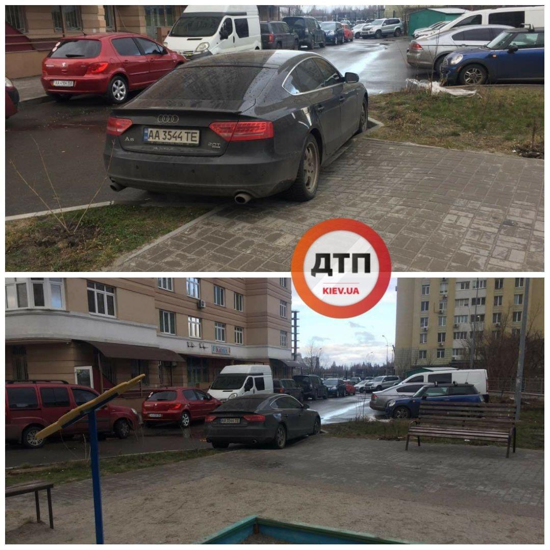 В столичном районе Позняки водитель Audi припарковал свой автомобиль во дворе многоэтажек, перекрыв заезд для колясок на детскую площадку. В сети – волна возмущения.