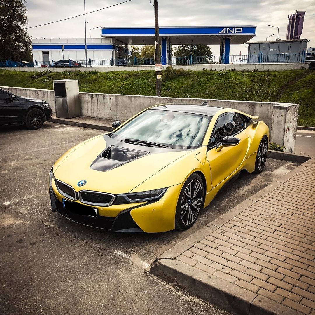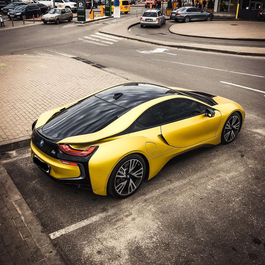В Киеве на Осокорках заметили роскошный спорткар BMW i8 "ядовитого" желтого цвета.
