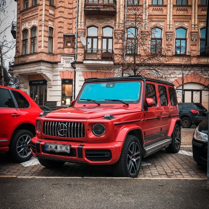 На дорогах Киева заметили редкий Mercedes G 63 AMG в тюнинге от Hofele Design яркого цвета.