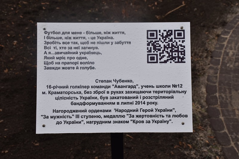 В Краматорске установили памятник 16-летнему Степану Чубенко, убитому оккупантами в Донецке в 2014 году. Посмертно его наградили орденами "За мужество" III степени, "Народный Герой Украины", нагрудным знаком "Кровь за Украину" и медалью "За жертвенность и любовь к Украине".