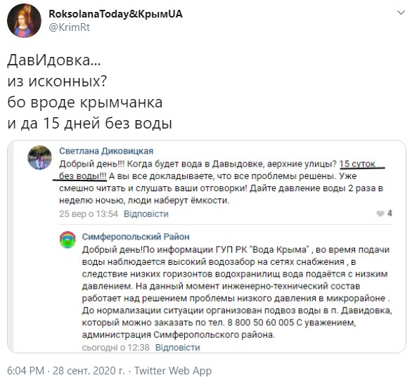 Жители Крыма в соцсетях жалуются на нехватку воды: