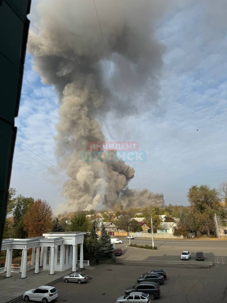 Во временно оккупированном Луганске раздались взрывы. Над городом - черный столб дыма.