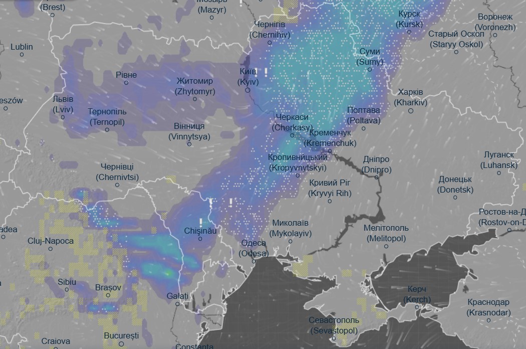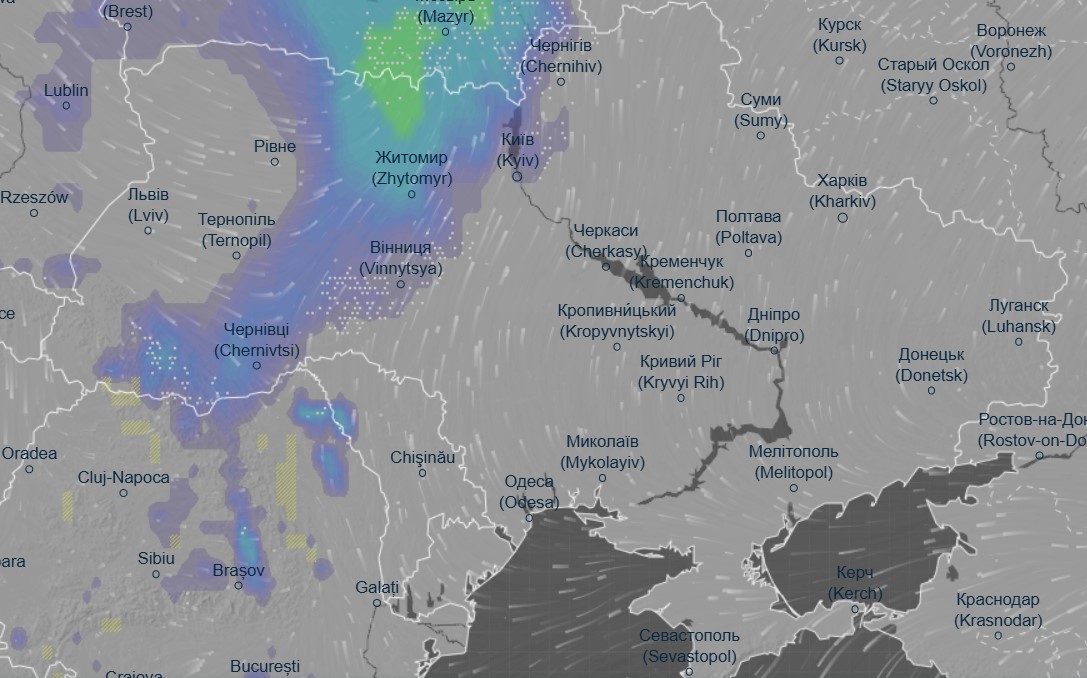 Об этом свидетельствуют данные метеоресурса Ventusky.