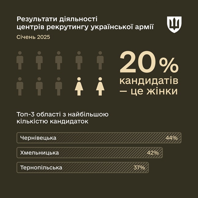В январе 2025 года в центры рекрутинга украинской армии обратились 5 381 человек. 20 процентом кандидатов - женщины.