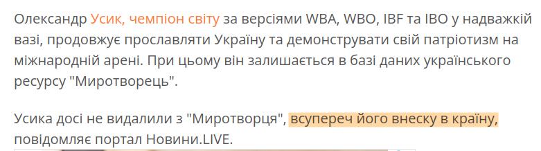 Напомним, Усика внесли в базу "Миротворца" в 2020 году за: