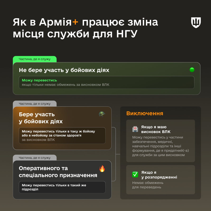 Неделю, как в приложении "Армия+", нацгвардейцы могут перевестись между подразделениями НГУ.