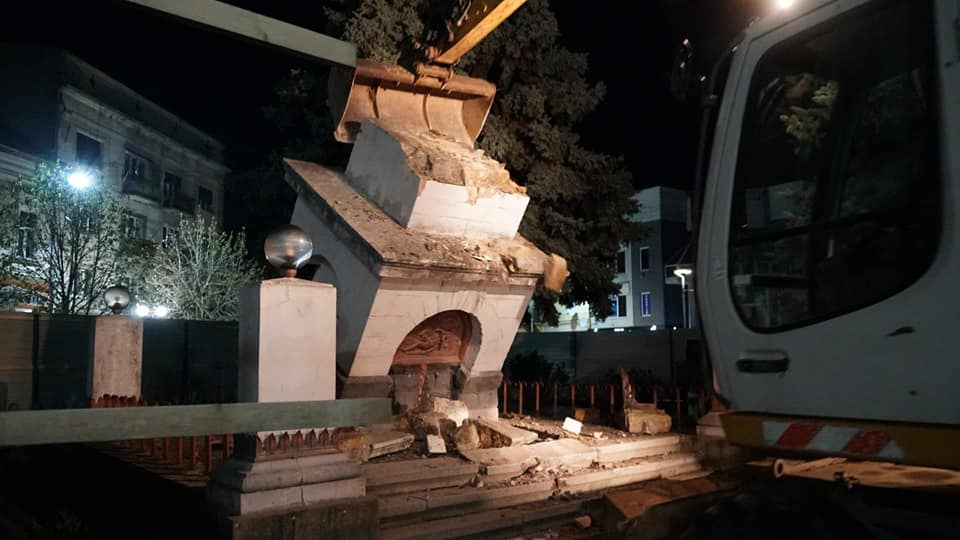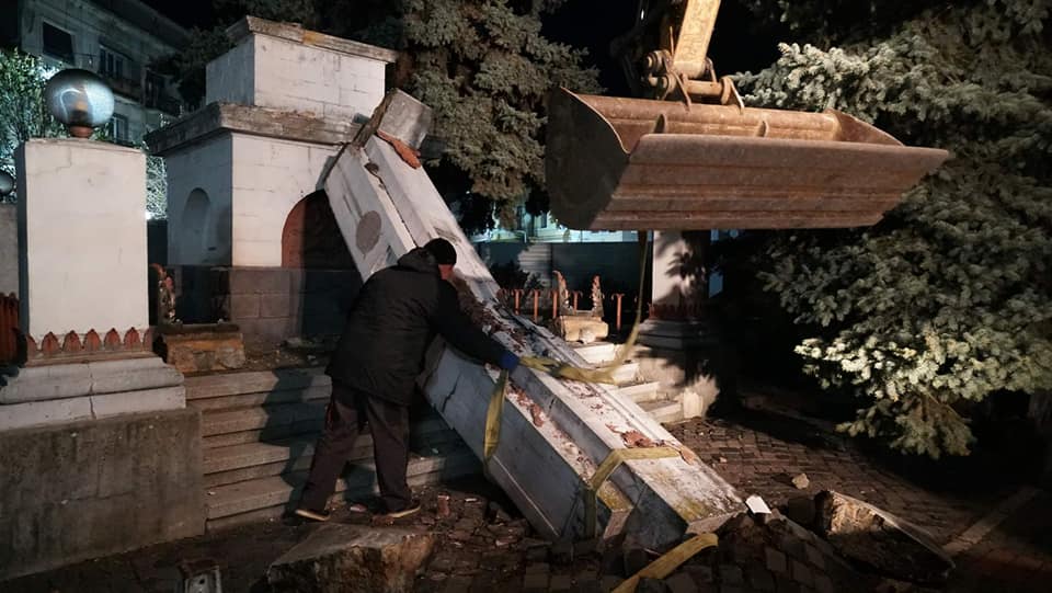 Утром во вторник, 19 апреля, в центре Мукачево демонтировали советский обелиск.
