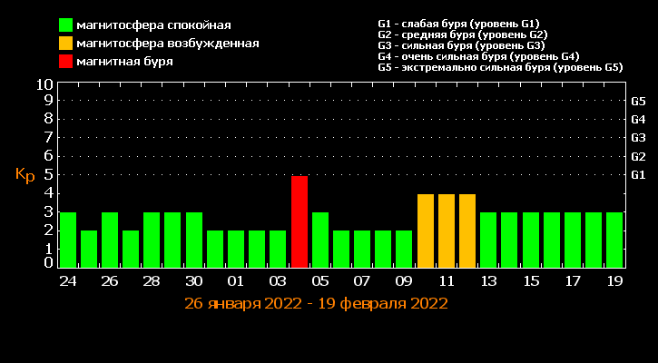 На 4 февраля прогнозируется сильная магнитная буря с мощностью в 5 баллов, а следующий период вспышек на Солнце ожидается ориентировочно с 10 по 12 февраля, который будет на уровне 4 баллов.