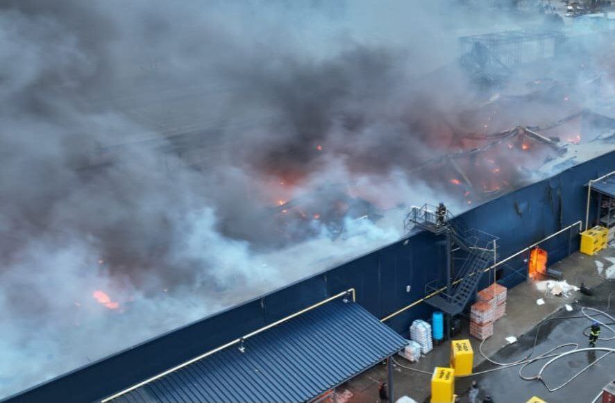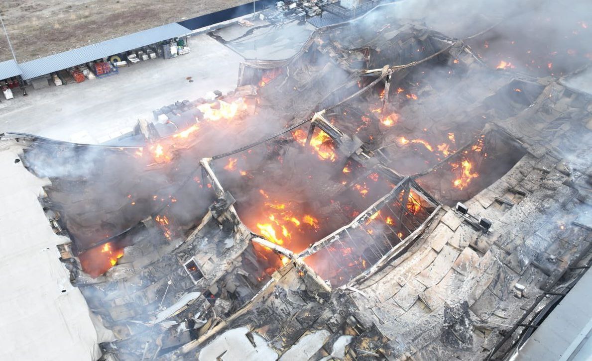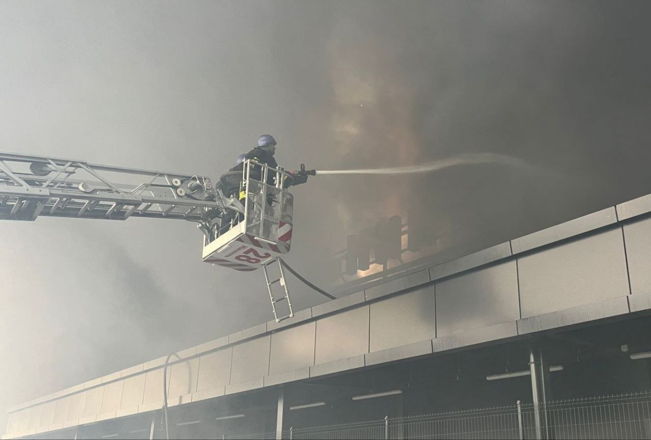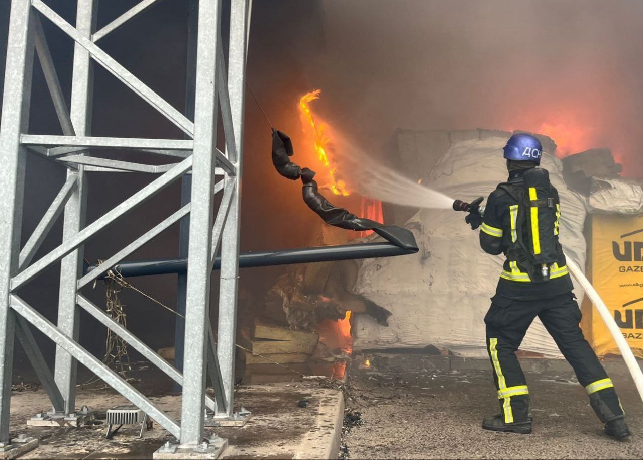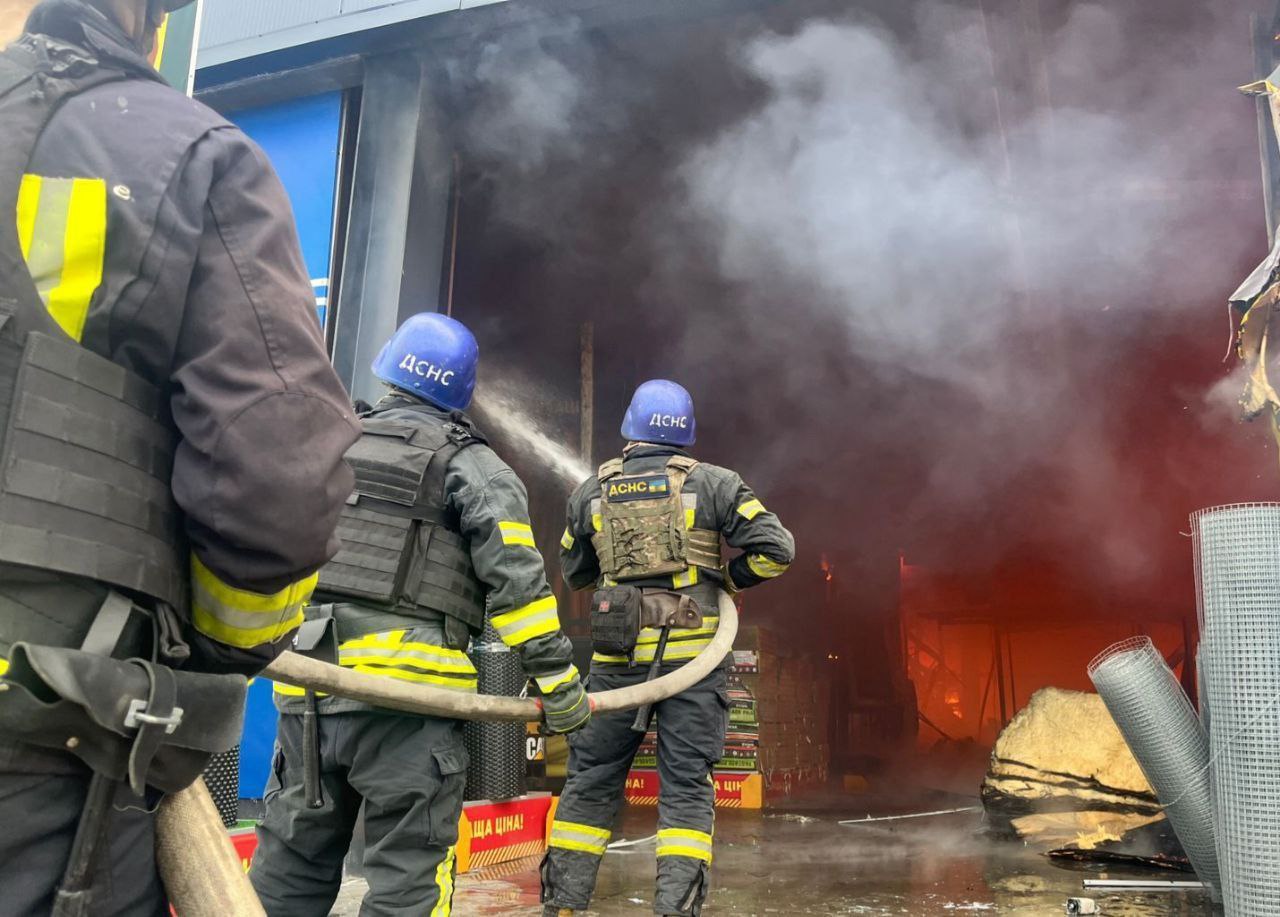 Сотрудники Государственной службы Украины по чрезвычайным ситуациям потушили пожар в торговом центре Никополя, по которому ударила Россия 6 марта.