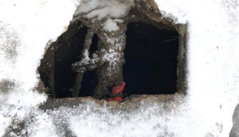 Женщина с трудом выбралась из западни и обнаружила, что яма, в которую она провалилась, была глубиной до трех метров, а внизу – бурлила вода. К счастью, потерпевшая зацепилась за трубу и не упала на дно.