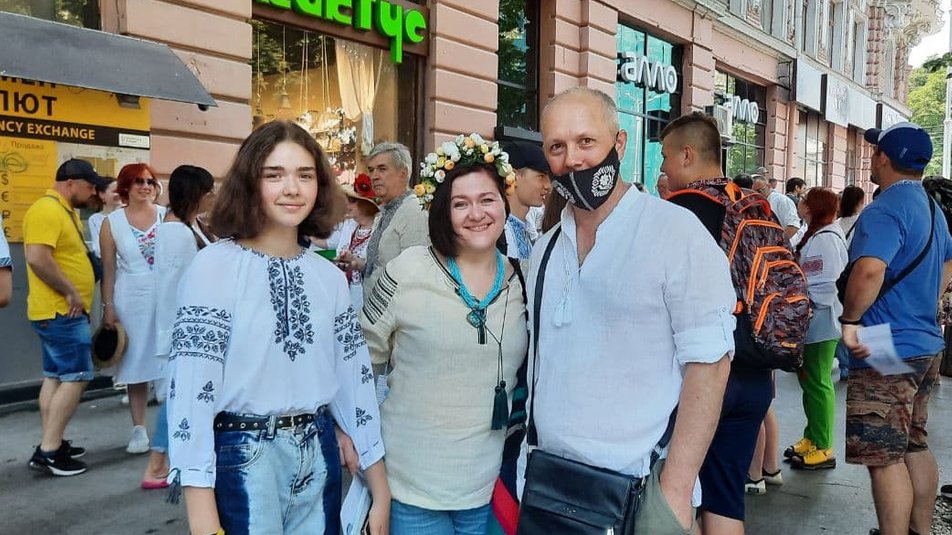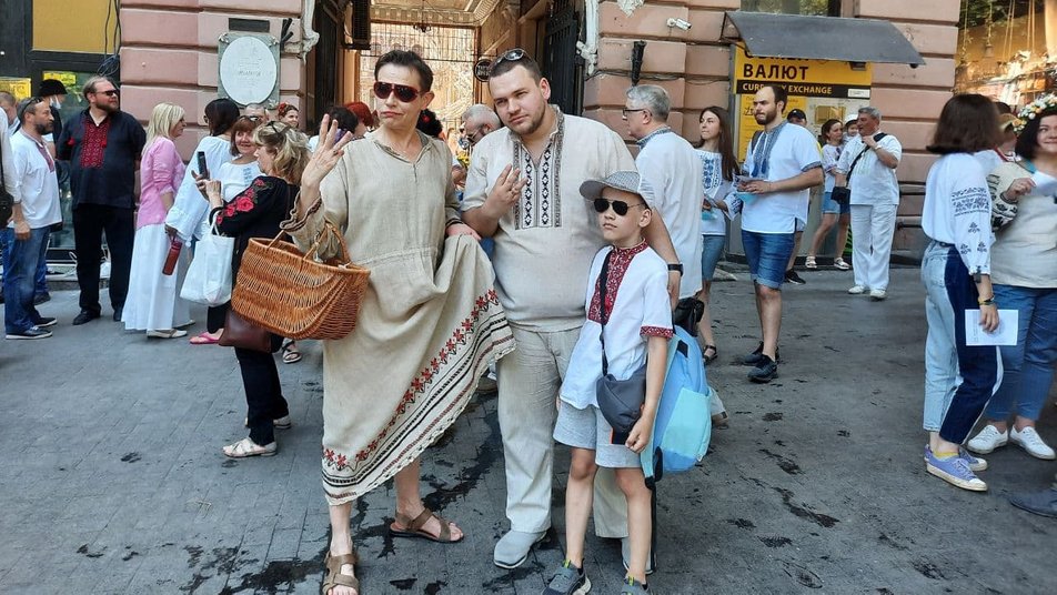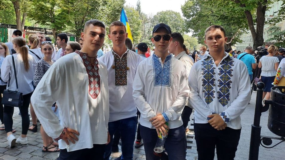 Началось шествие на Дерибасовской и люди в вышиванках прошли по улицам Ришельевской, Ланжероновской и Пушкинской. Завершился мегамарш у здания Одесского горсовета.