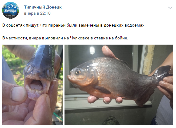 В оккукпированном Донеце в одном из водоемов появились рыбы из семейства пираньевых, отличительной особенностью которых являются очень острые зубы.