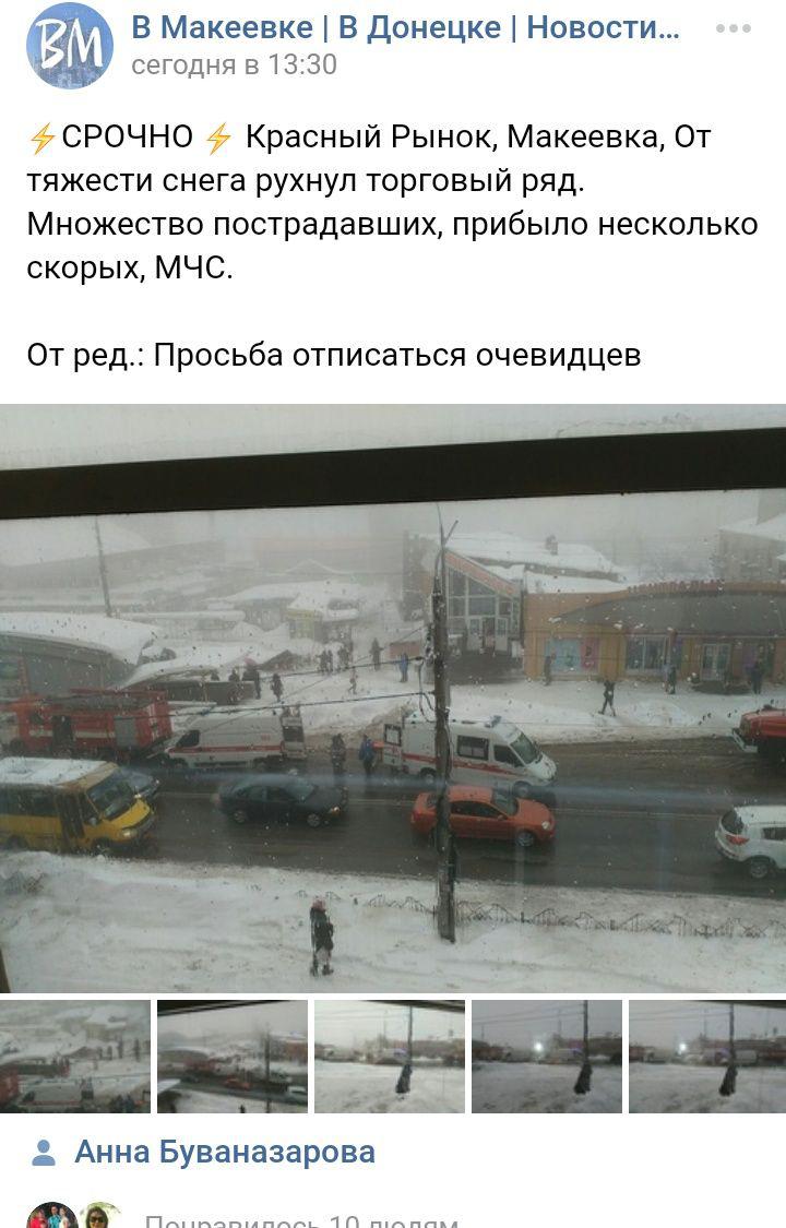 В сети показали фото серьезного ЧП в оккупированной Макеевке: от обильного снега рухнула крыша городского рынка.