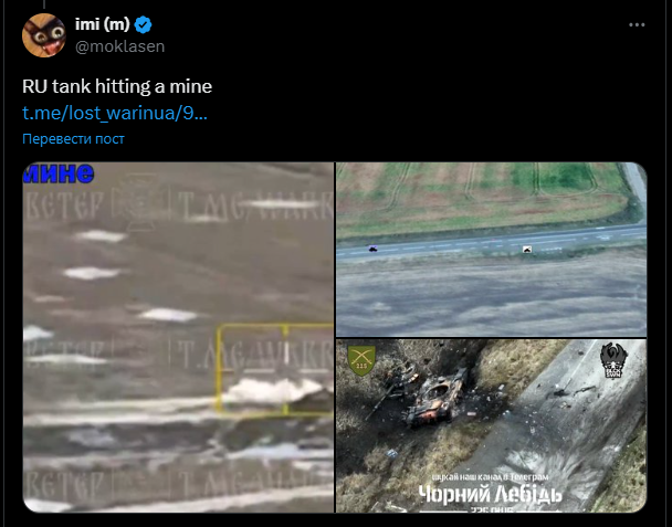 Для примера, по словам блоггера, скопление сожженной российской техники на 00:31 сек – это выезд из Любимовки в сторону Зеленого Пути. В свою очередь блогер moklasen заметил, что подрывающийся на мини танк на 00:26 сек - так же российский, а соответствующие кадры были локированы сообществом lost_warinua еще 27 ноября южнее Зеленого Пути.
