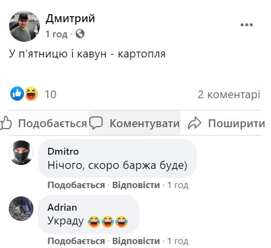 "В пятницу и арбуз – картошка", - пошутил автор сообщения в сети. Посетители его странички успокоили, что скоро с юга в Киев должна прийти традиционная баржа с арбузами.