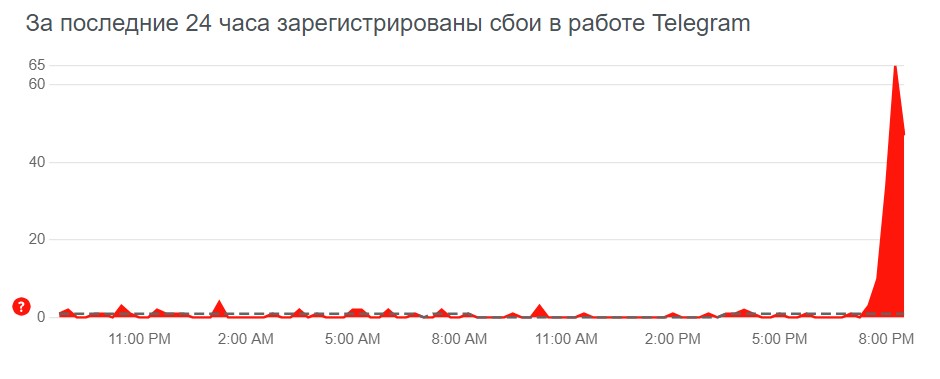 "На этой диаграмме показано представление отчетов о проблемах, отправленных за последние 24 часа, по сравнению с типичным объемом отчетов по времени суток. О некоторых проблемах обычно сообщают в течение дня. Downdetector сообщает об инциденте только тогда, когда количество сообщений о проблемах значительно превышает типичный объем для этого времени суток", – сообщили в Downdetector.