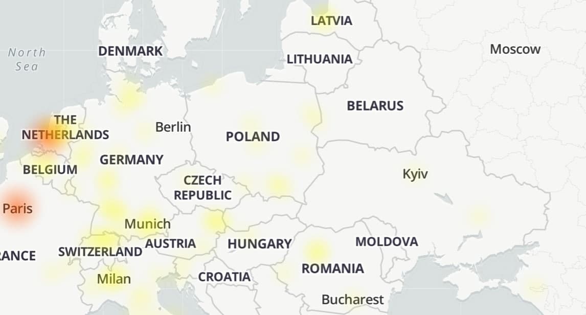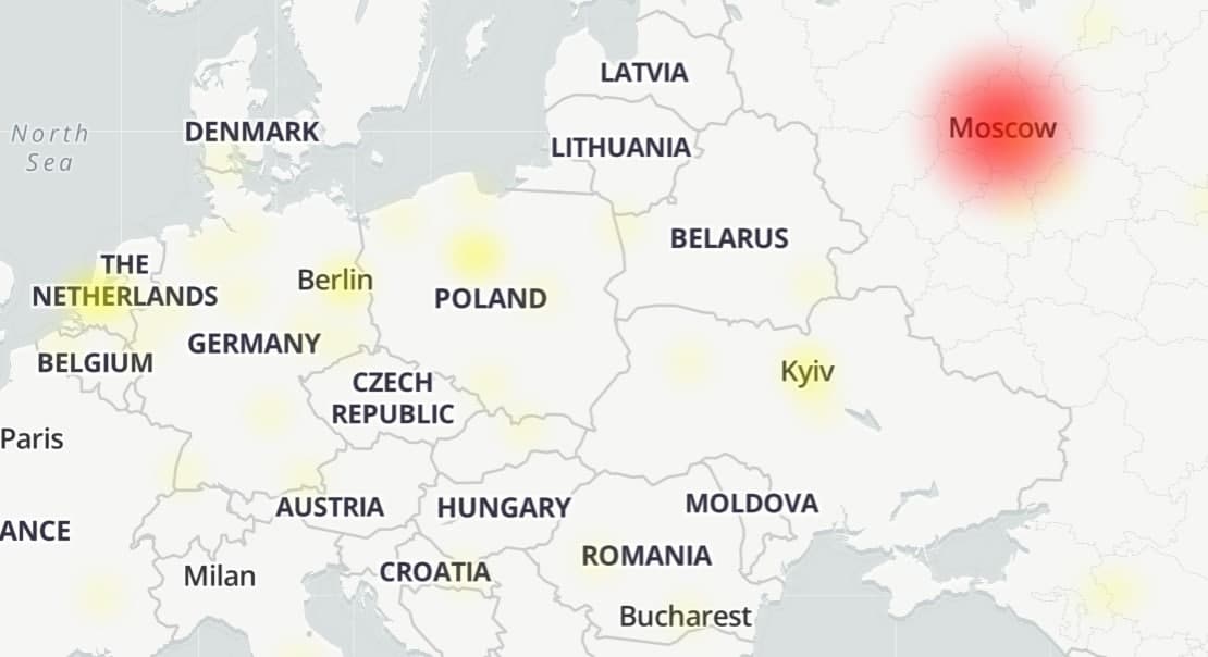 Судя по карте, ситуация также отразилась на пользователях из Киева.
