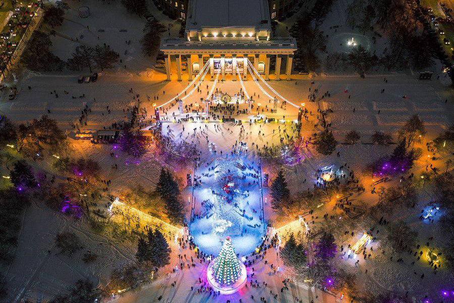 Около оперного театра открыли главный новогодний каток города. Однако его форма привела жителей и пользователей сети в замешательство. То что он сделан в форме мужского полового органа увидели после того, как в сети опубликовали фото катка с высоты птичьего полета.