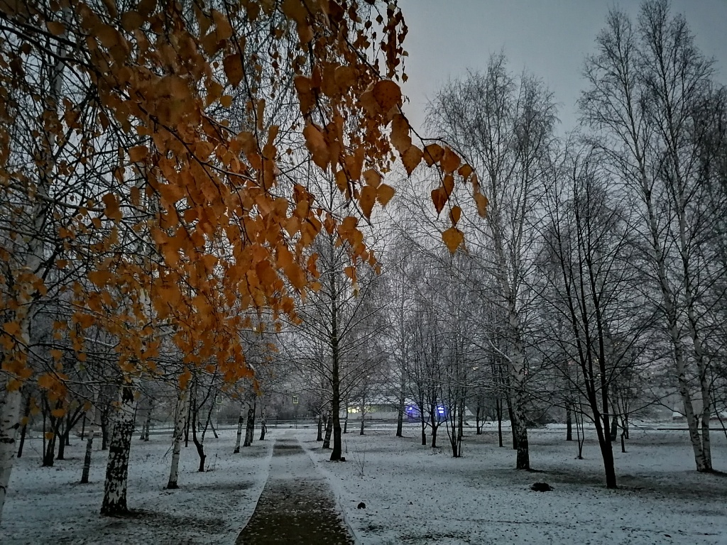 В городе Нижний Тагил (Свердловская область РФ) в ночь на 17 октября выпал первый снег.