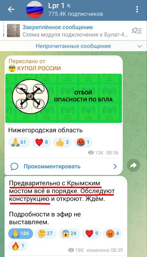 "В этот момент по мосту еще ехали машины со стороны Тамани, обломки упали прямо на дорогу. К счастью, никого не задело. Повреждений на мосту нет. После его закрыли на три часа – спецы проверяли дорогу и убирали обломки", - сообщают местные телеграм-каналы.