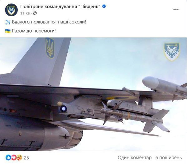 Воздушное командование "Юг" разместило у себя на странице в Facebook фото самолета F-16 украинских Воздушных сил ВСУ.