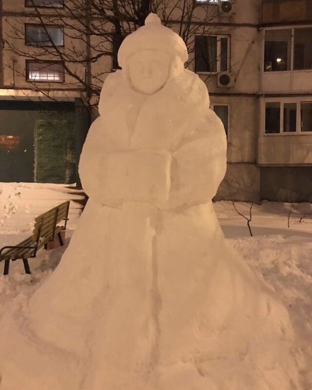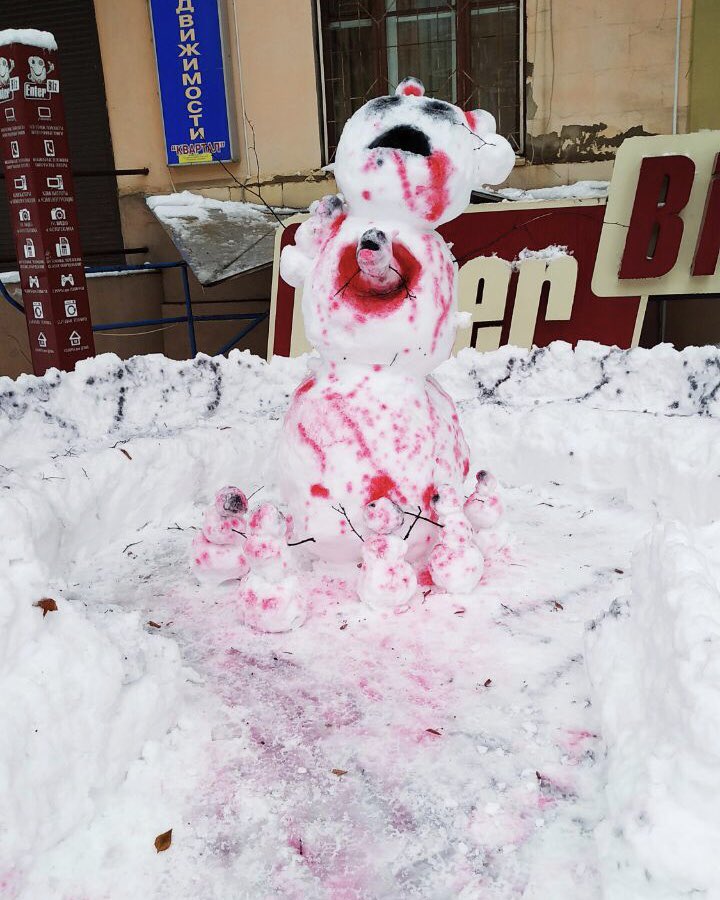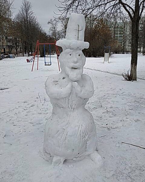 Снимки снежных скульптур опубликовали в Twitter "Х*евая Салтовка".