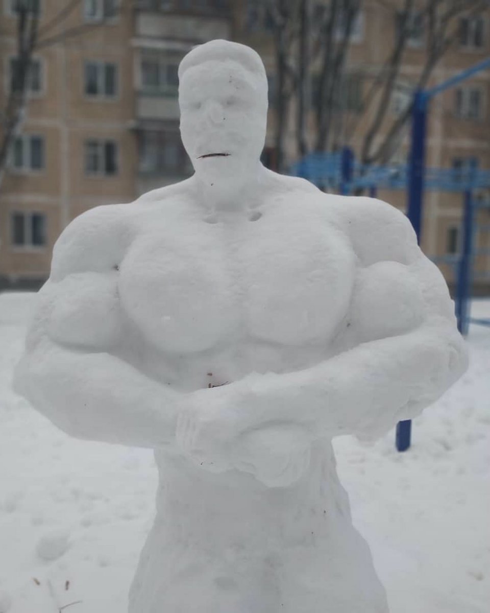 В частности, неизвестные авторы оставили на улицах города творения из снега в виде бодибилдера, восточного мудреца, а также обыграли сюжет из фильма "Чужой".