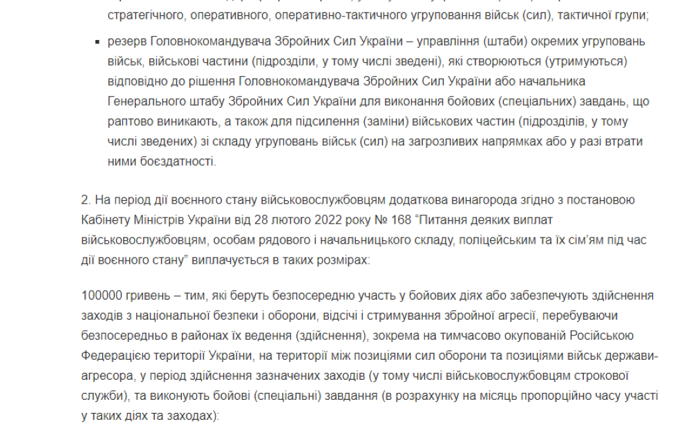 Начиная со среды, 1 февраля, военнослужащие Сил обороны и сотрудники системы Министерства внутренних дел, которые несут службу в тылу, вне зоны боевых действий на востоке, юге или севере страны, больше не будут получать дополнительную месячную выплату, которая установлена в размере 1 тысяча гривен в день. В сети появился приказ о сокращении выплат.