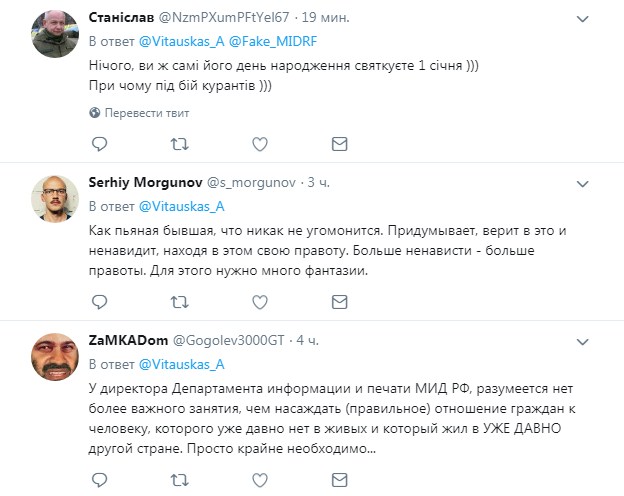 "У директора Департамента информации и печати МИД РФ, разумеется нет более важного занятия, чем насаждать (правильное) отношение граждан к человеку, которого уже давно нет в живых и который жил в УЖЕ ДАВНО другой стране", - пишут пользователи сети.
