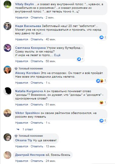 "И сказал ему внутренний голос: "...чувачок, а позаботься-ка о россиянах"...и сказал россиянам их внутренний голос: "...вот теперь точно п...ц", "Заботливый наш! 20 лет "заботится"... Может уже не нужно прикидываться и признать, что народ ему давно по фиг", "А он правильно понимает слово "доходы"? Возможно, он думает, что "доходы" и "доходяга" - однокоренные слова?", - пишут в комментариях.