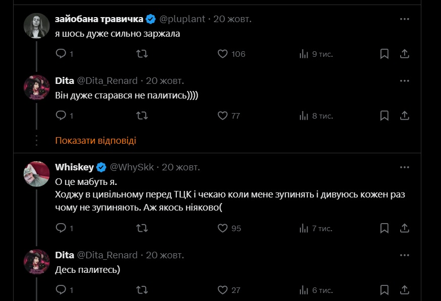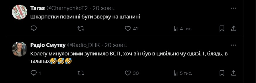 В комментариях к твиту пользователи Х поделились историями встреч с ТЦК своих знакомых-военнослужащих, предлагали на продажу "обереги от ТЦК".