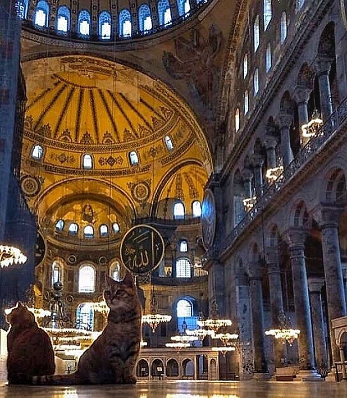 В Стамбуле в Соборе Святой Софии живет кошка, которая своим видом радует посетителей святыни.